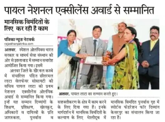 हमारी संस्था की सचिव को नेशनल एक्सीलेंस अवॉर्ड
