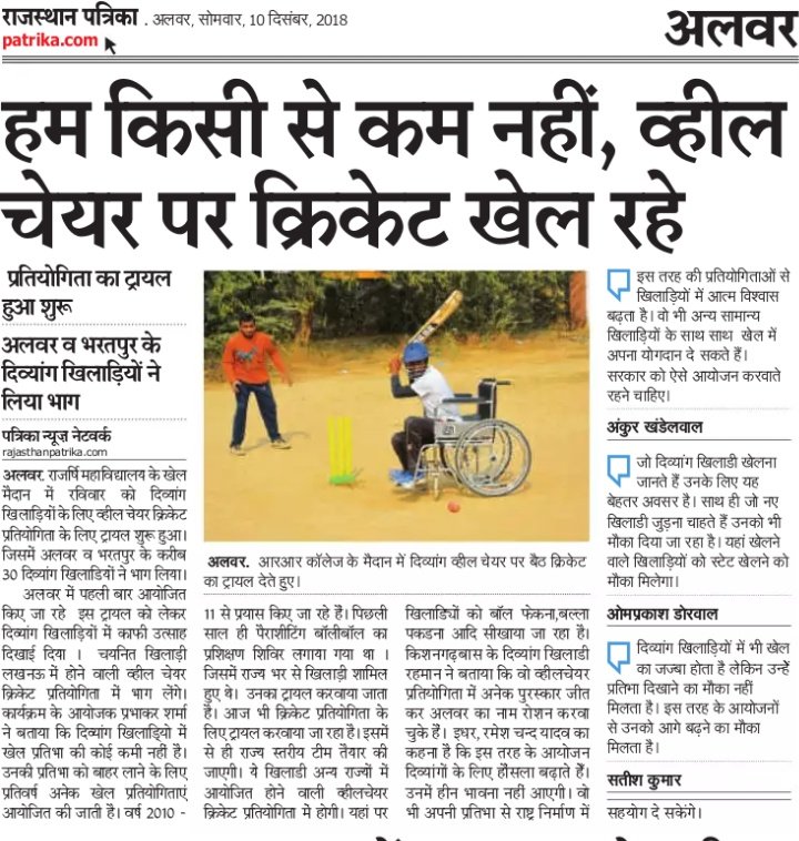 🏅 राष्ट्रीय प्रतियोगिता में अलवर के 16 दिव्यांग खिलाड़ी चयनित